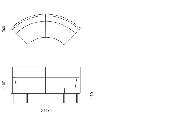 CAP-12 Curved high-back two seater – 90 degree