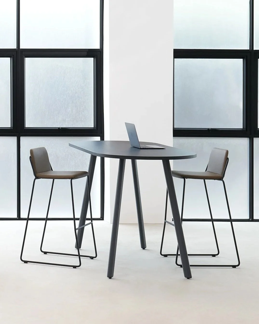 This versatile collection of desks and bar tables is designed to create flexible, dynamic spaces for both teams and individuals. Case features rotated legs with rounded edges, promoting a welcoming environment for conversation and easy movement. Customisable in various sizes and finishes, this collection is ideal for offices, cafes, or home.