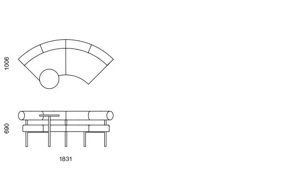 SIO-06-TB Curved inward seat with table – 90 degree