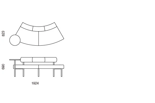 SIO-10-TB Curved outward seat with table – 60 degree